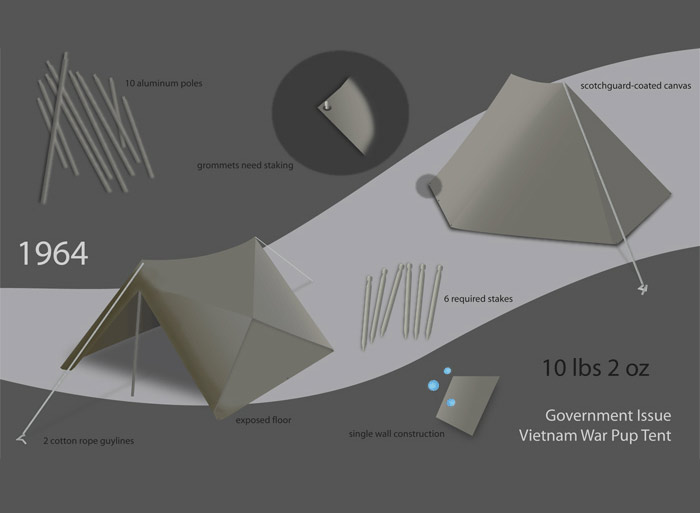 This graphic was created to show the evolution and differences in tent design from 1964 and today; using Illustrator and Photoshop.